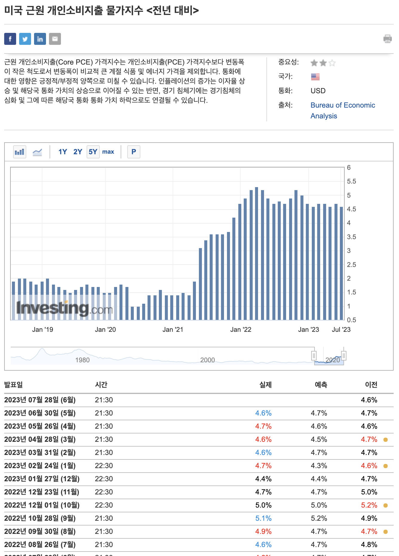- 미국 근원개인소비지출물가지수 PCE: 4.6% --> 4.7%(예측 4.6%)