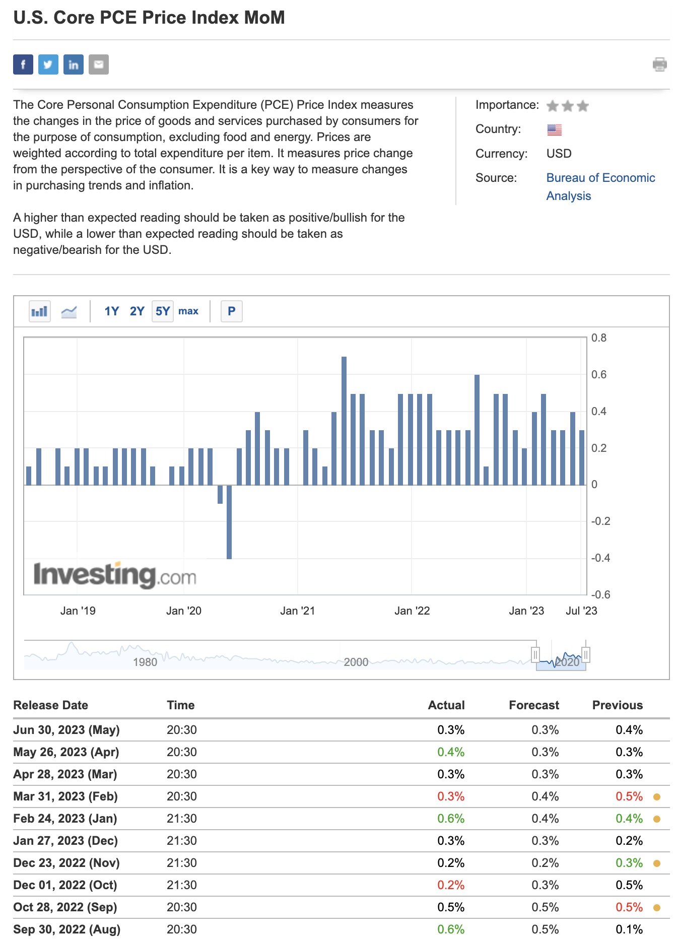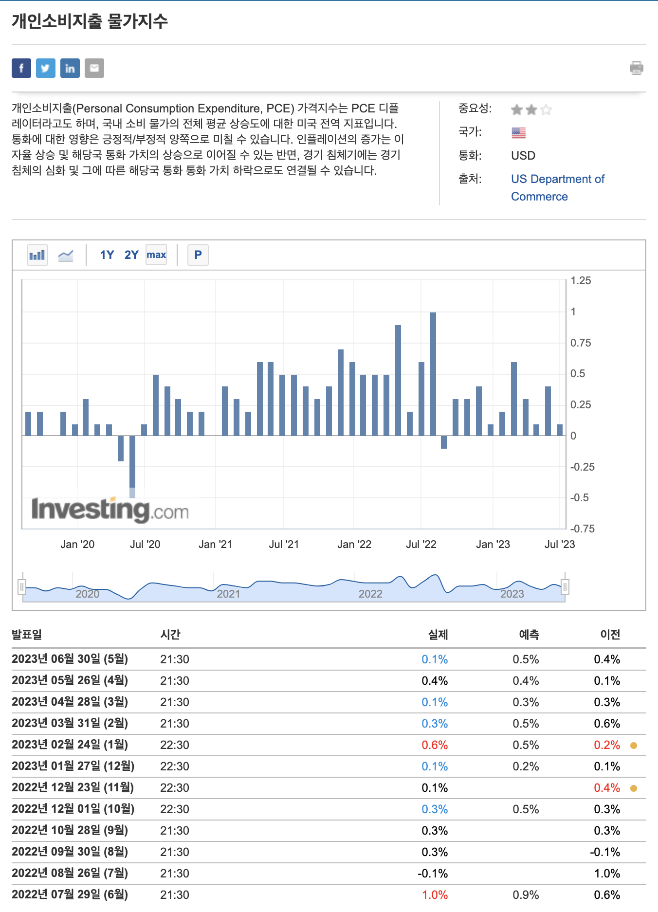이번달 PCE 발표는 이번주 한국시간 6월 30일 금요일 21:30 에 발표합니다.