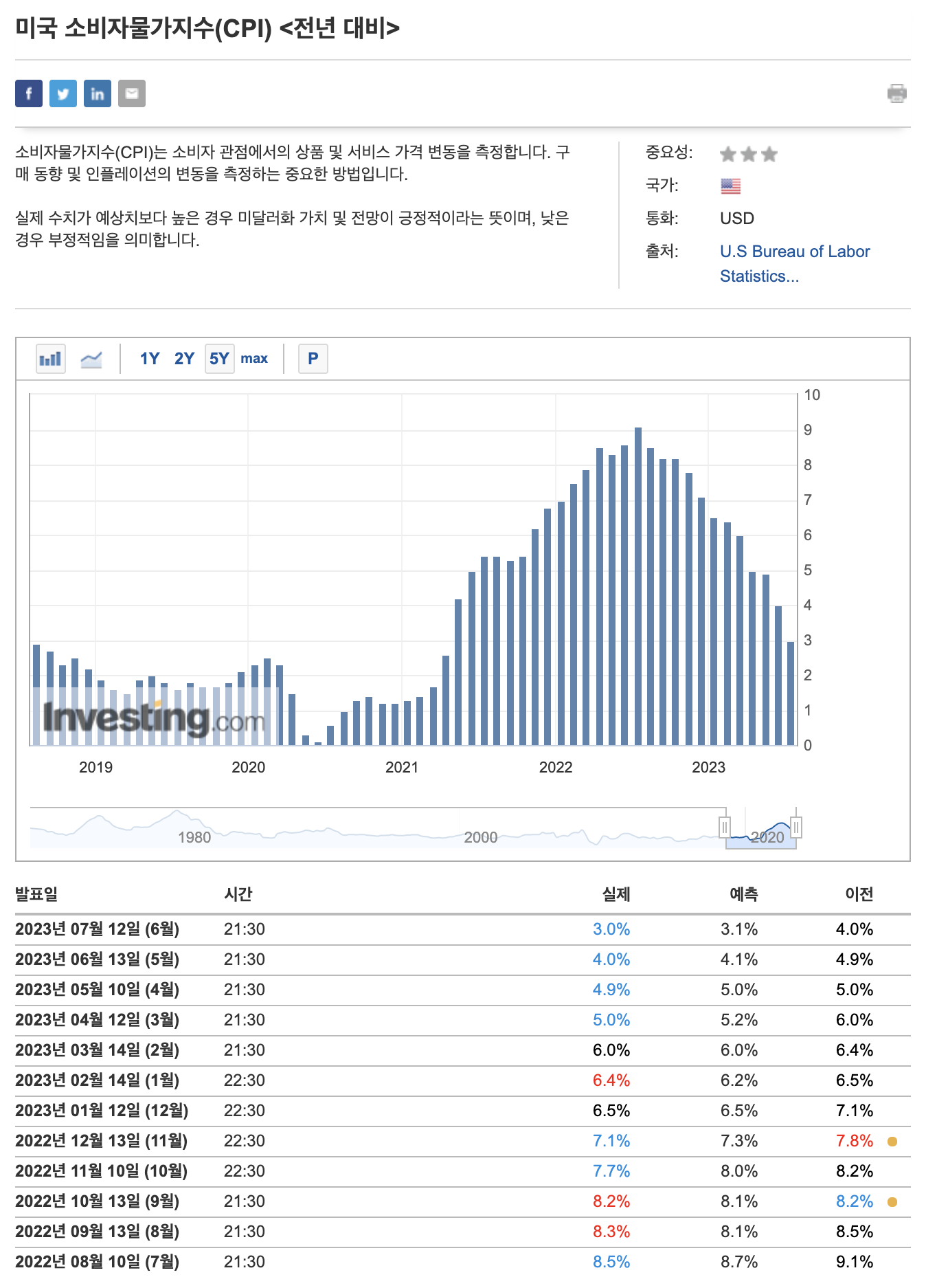 인플레이션 소비자물가지수 CPI 는 이전에 정리된 내용 참고해 주세요.