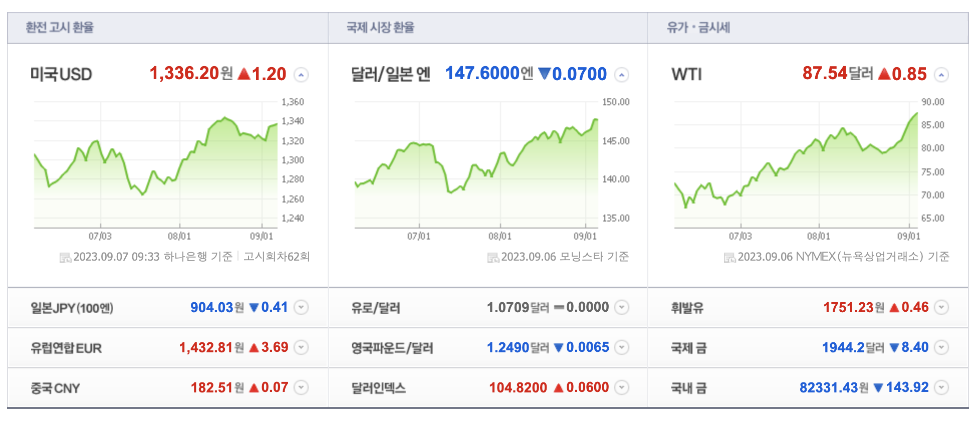 | 📰 경제뉴스 요약 💠 글로벌 유가 상승과 강달러에 의한 환율 상승 (0) | 2023.09.06 |