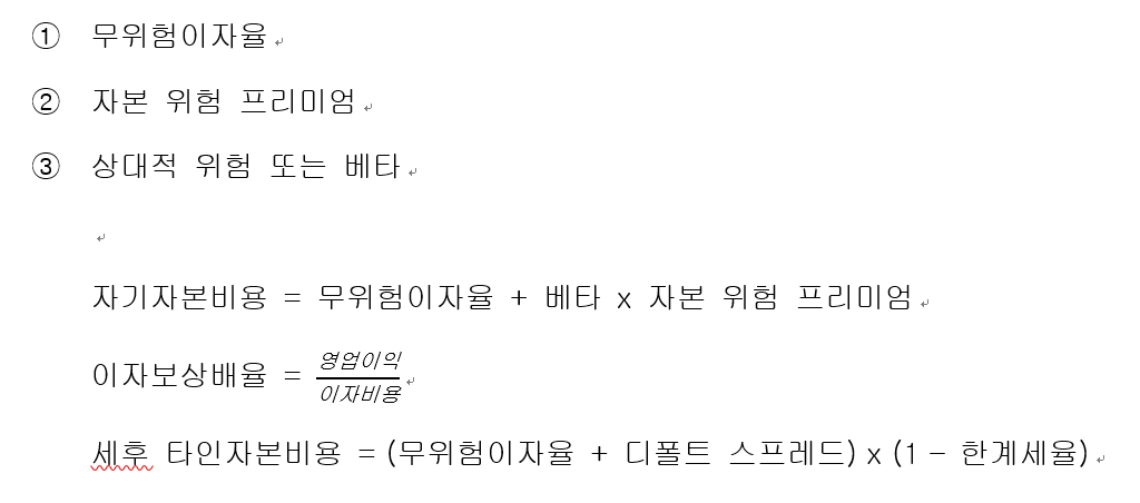 개별주식에 대한 투자 기대수익률 = 무위험이자율 + 베타 X (시장의 위험 프리미엄)