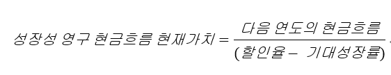성장성 영구 현금흐름은 성장률 < 할인율 또는 경제 명목 성장률 보다 낮아야 한다.