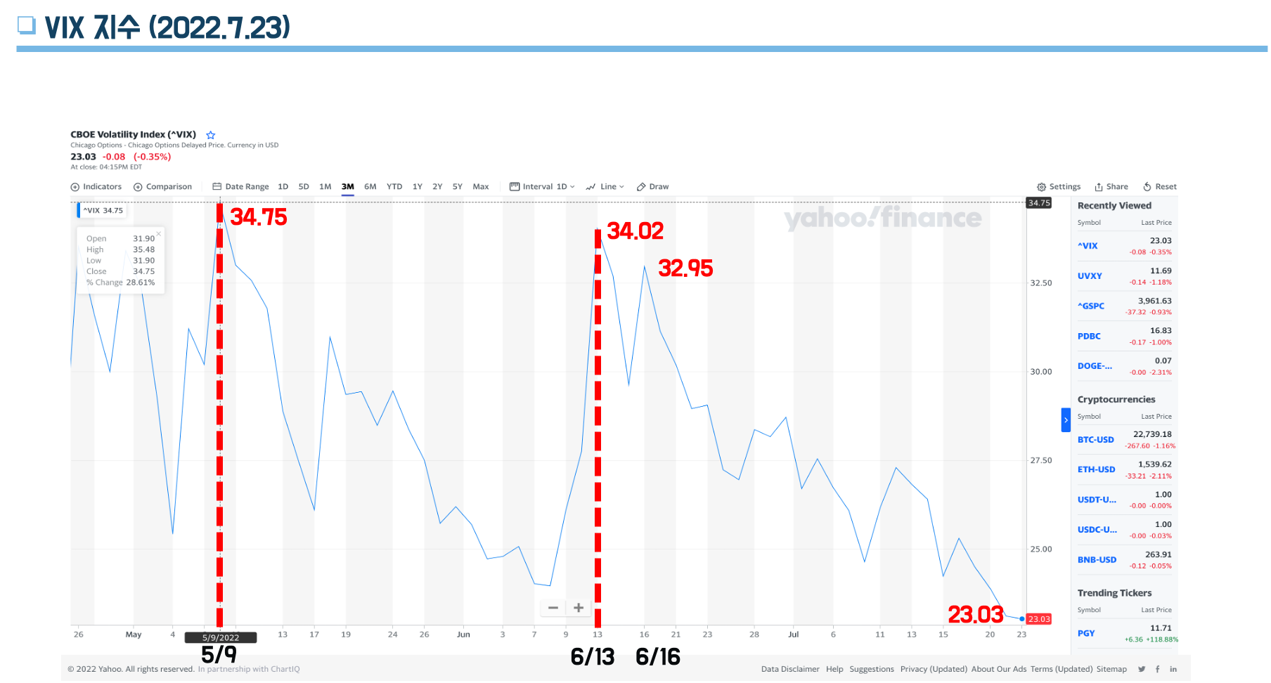 ▣ VIX 지수 (기준 2022년 5월 1일 ~ 7월 23일)