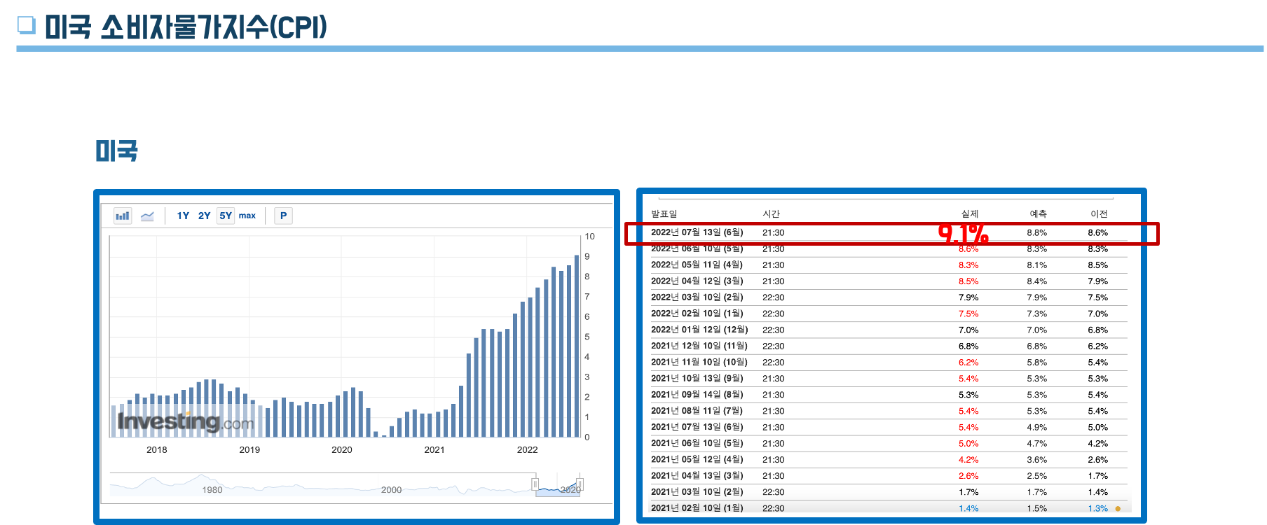 ▣ 미국 소비자물가지수
